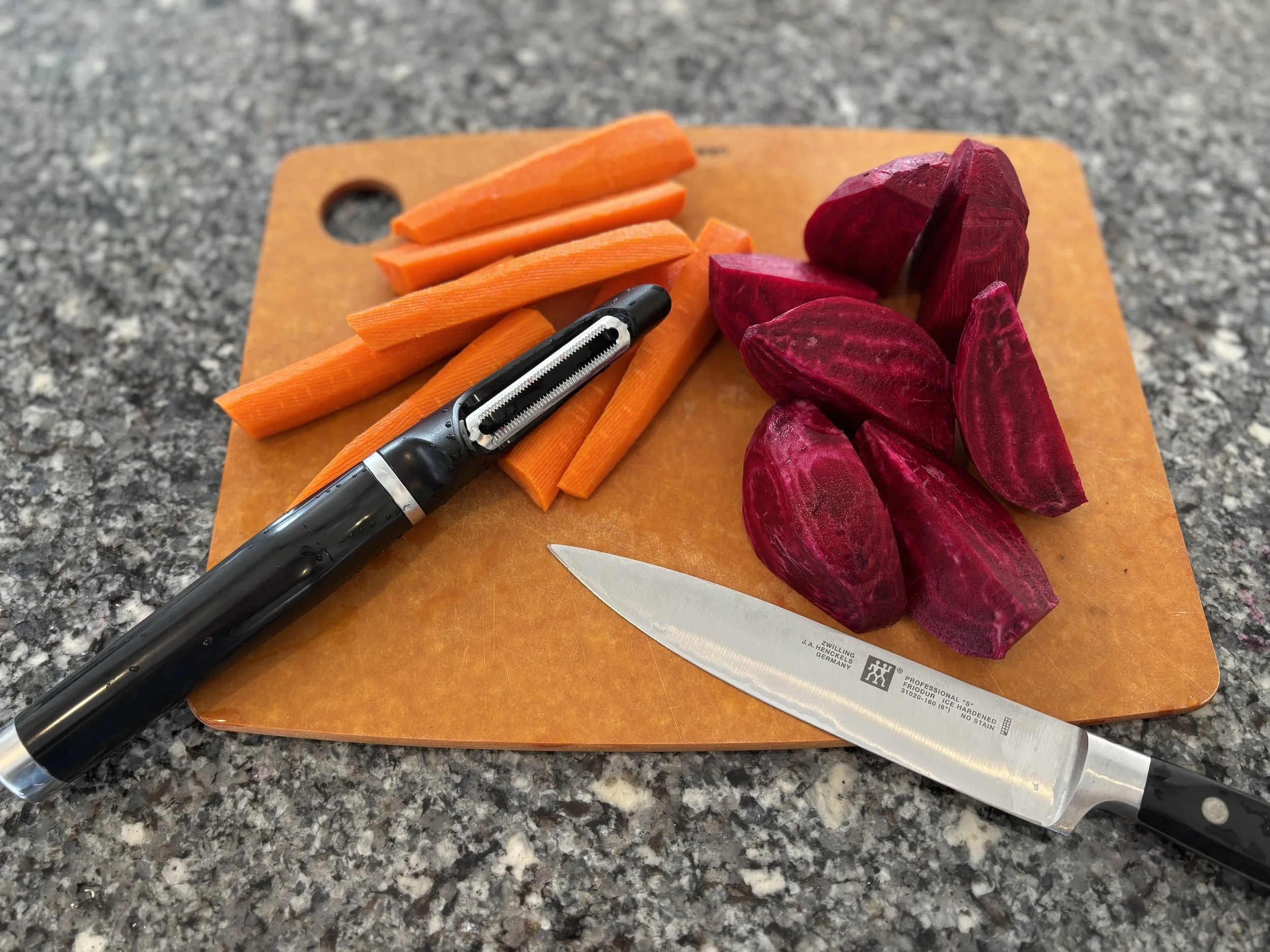 Wash, peel and cut the carrots and beets